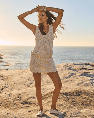 Between stories and laughter, we wandered through the groves, sipping on local wine as the afternoon light played upon our latest collection, Yaya ~ named in honour of the Greek word for grandmother. The delicate broderie anglaise caught the sun, revealing patterns as intricate as the land’s history itself.